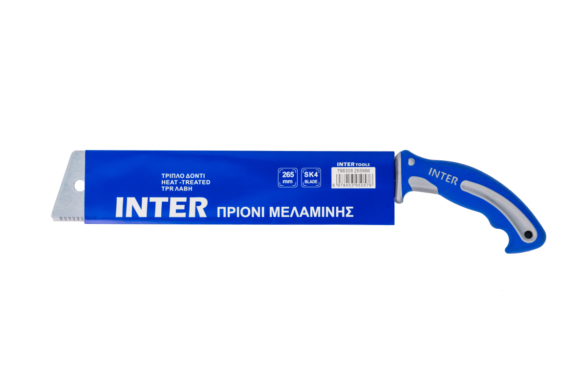 Το πριόνι μελαμίνης INTER 798308, συνδυάζοντας λάμα SK4, τριπλό δόντι και TPR εργονομική λαβή, είναι ένα εξειδικευμένο πριόνι χειρός για καθαρό και γρήγορο κόψιμο μελαμίνης.